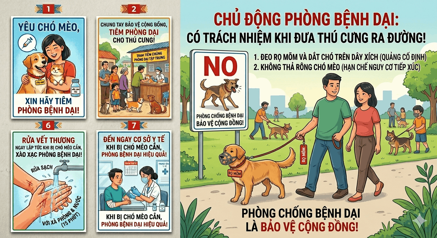 Nhằm ngăn chặn đến mức thấp nhất nguy cơ bệnh Dại từ các địa bàn từng có dịch lây lan sang địa bàn chưa có dịch, đồng thời không để phát sinh bệnh Dại trên người, ngày 08 tháng 4 năm 2026, Chi cục Chăn nuôi và Thú y An Giang đã triển khai kế hoạch tiêm phòng bệnh Dại trên chó, mèo đợt 1 năm 2026.