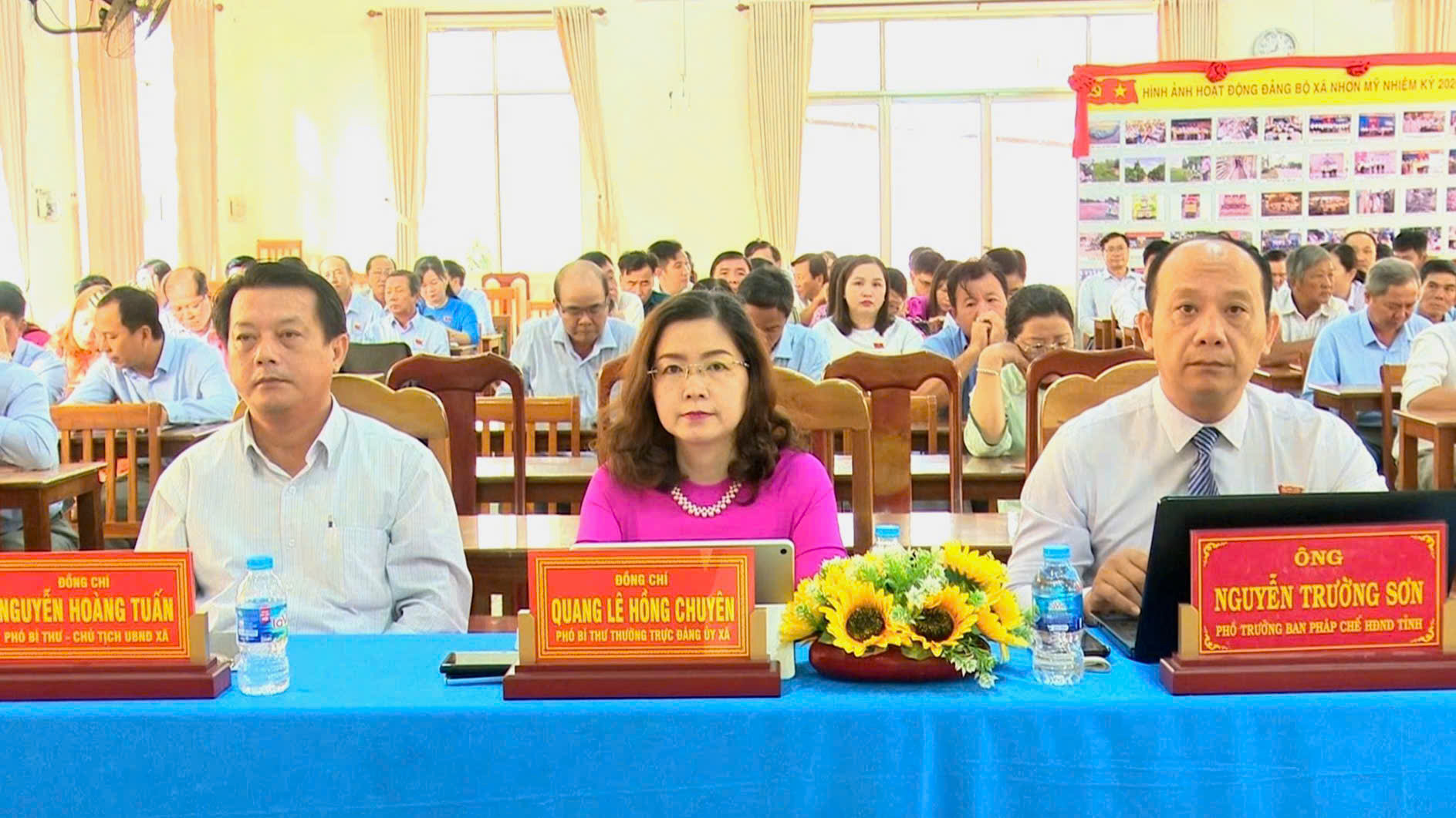 Tham dự kỳ họp có ông Nguyễn Trường Sơn, Phó Trưởng Ban Pháp chế HĐND tỉnh; bà Đinh Kim Ngân, Phó Chánh Văn phòng Đoàn Đại biểu Quốc hội và HĐND tỉnh; ông Nguyễn Huyền Linh, Phó Trưởng Phòng Công tác HĐND tỉnh. Kỳ họp do ông Trần Ngọc Bầu, Bí thư Đảng ủy, Chủ tịch HĐND xã và ông Huỳnh Văn Dứt, Phó Chủ tịch HĐND xã Nhơn Mỹ đồng chủ trì.