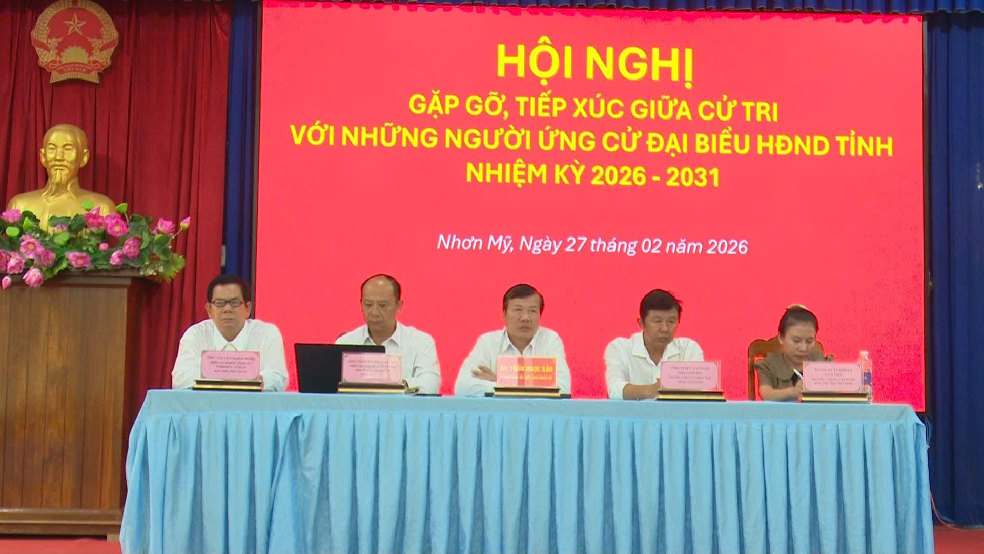 Chiều 27/02/2026, tại hội trường UBND xã Nhơn Mỹ, Ban Thường trực Ủy ban MTTQ Việt Nam xã Nhơn Mỹ phối hợp cùng Đơn vị bầu cử số 15 và UBND xã Nhơn Mỹ tổ chức hội nghị tiếp xúc giữa cử tri và các ứng cử viên đại biểu HĐND tỉnh nhiệm kỳ 2026–2031. Chủ trì hội nghị có ông Nguyễn Văn Sanh – Chủ tịch UBMTTQ Việt Nam xã và ông Nguyễn Hoàng Tuấn – Phó Bí thư Đảng ủy - Chủ tịch UBND xã Nhơn Mỹ.