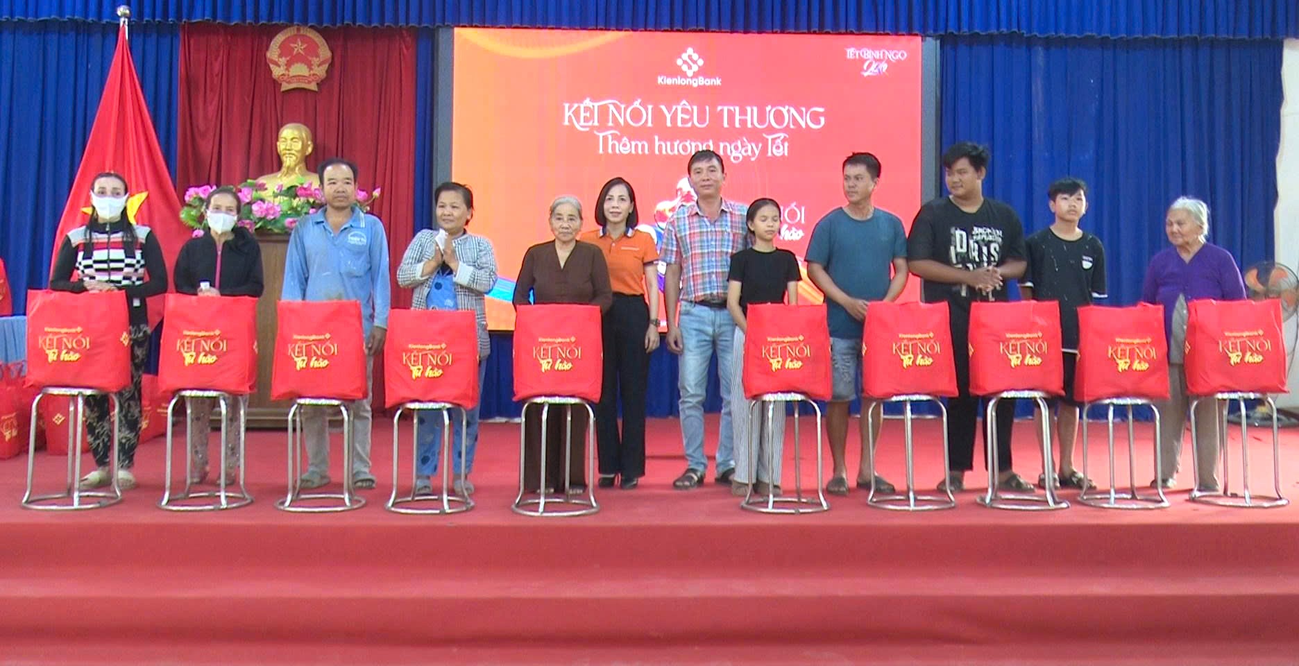 Tại chương trình, Ngân hàng đã trao 45 phần quà tết gồm: gạo, bánh, kẹo và nhu yếu phẩm (trị giá 500.000 đồng/phần) đến các hộ nghèo trên địa bàn xã Nhơn Mỹ. Tổng trị giá quà 22,5 triệu đồng. Dịp này, Ngân hàng Thương mại Cổ phần Kiên Long - Chi nhánh Phường Long Xuyên tặng 07 phần quà cho Tổ trưởng tổ vay vốn của xã Nhơn Mỹ, tổng số tiền 3,5 triệu đồng.