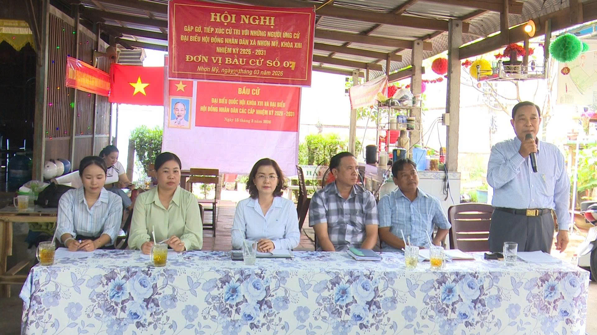 Chiều ngày 05/03/2026, tại quán cà phê Lê Thành Lưu, ấp Mỹ Thạnh, Ủy ban MTTQ Việt Nam xã Nhơn Mỹ tổ chức hội nghị gặp gỡ, tiếp xúc cử tri với những người ứng cử đại biểu HĐND xã, nhiệm kỳ 2026 – 2031 thuộc đơn vị bầu cử số 7, gồm các ấp: Mỹ Thành, Mỹ Thạnh (Mỹ Hội Đông cũ) và Mỹ Đức.