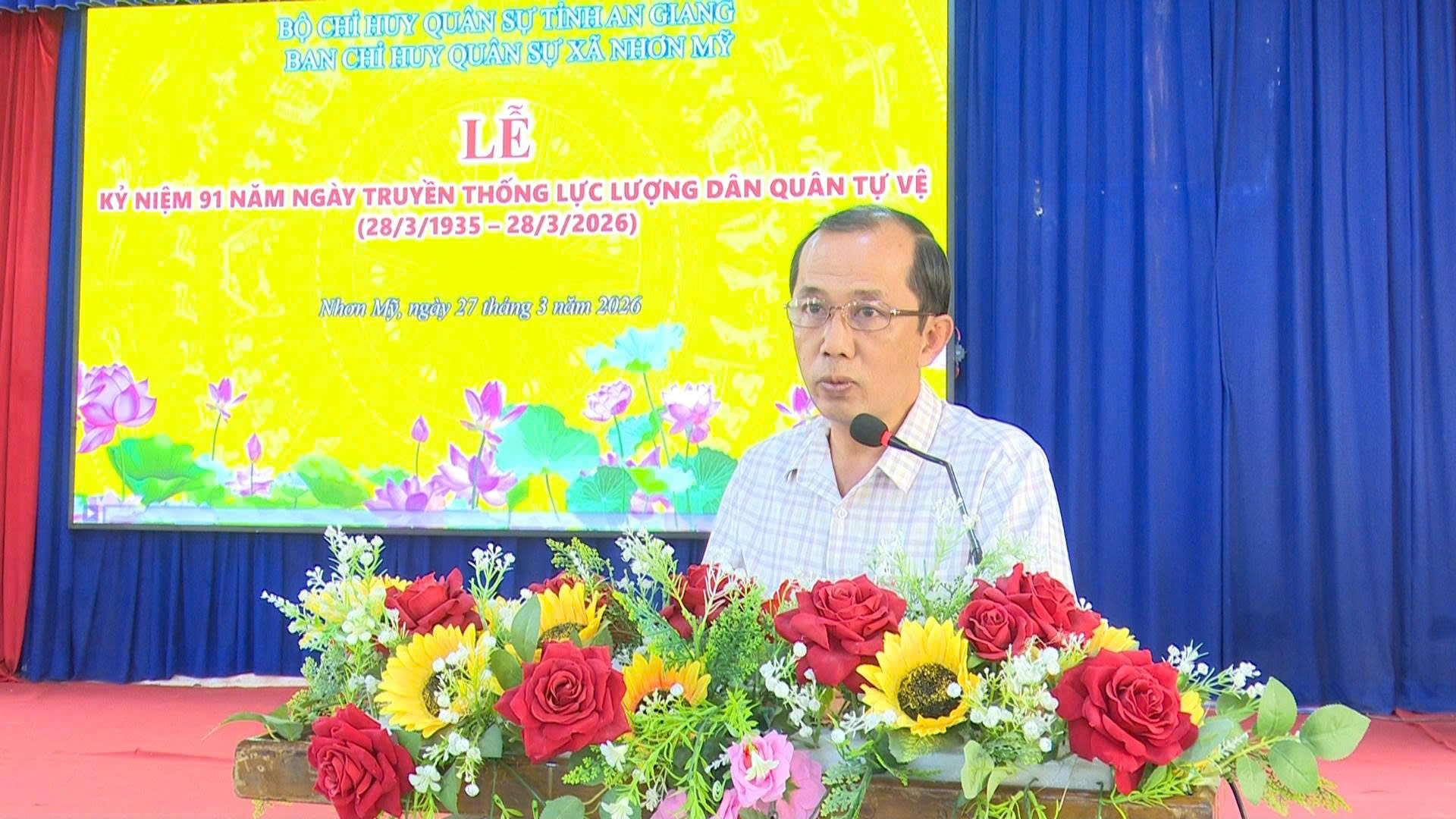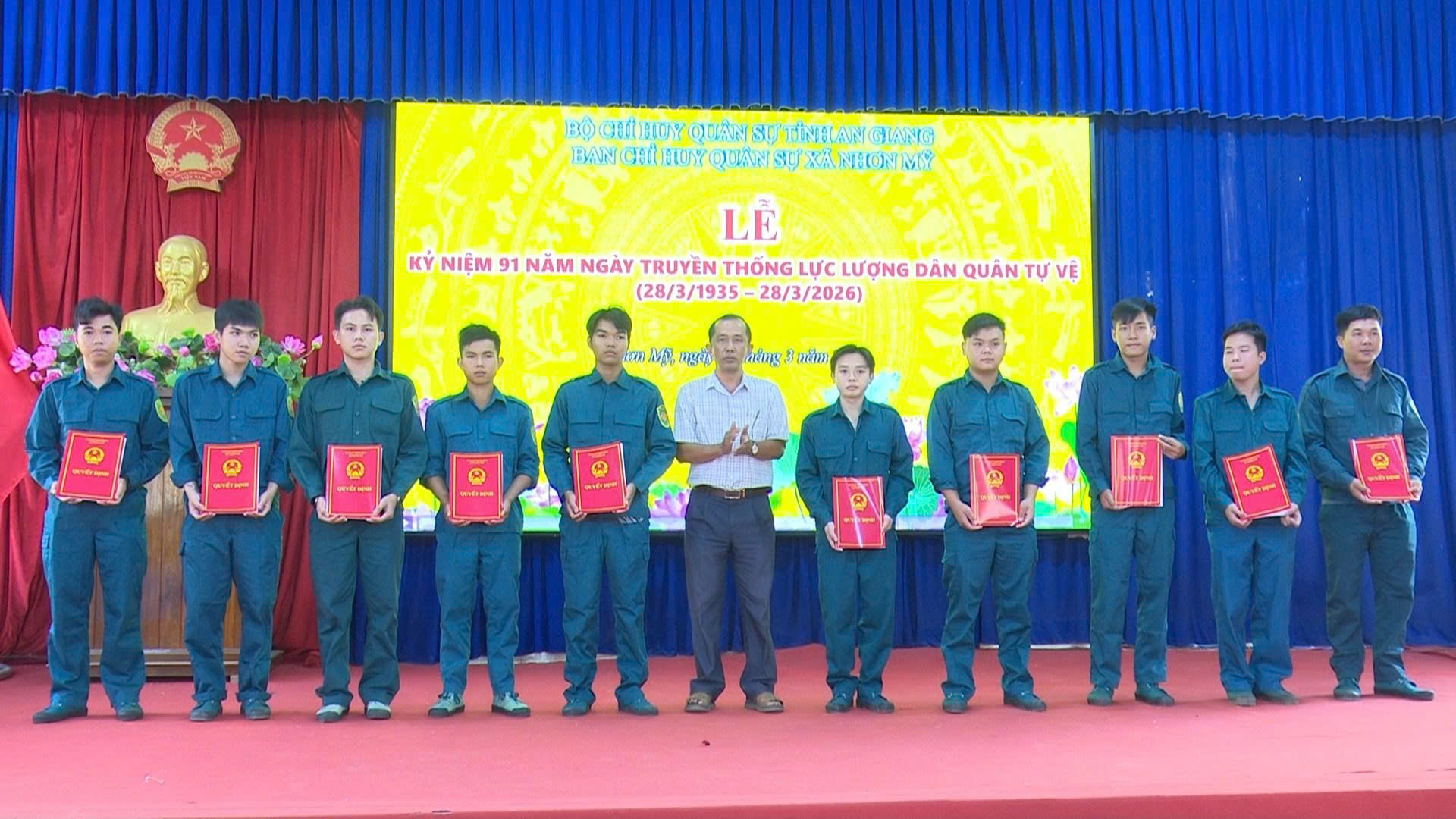 Sáng ngày 27/3/2026, Ban chỉ huy quân sự xã Nhơn Mỹ tổ chức Lễ kỷ niệm 91 năm ngày truyền thống dân quân tự vệ (28/3). Tham dự có đồng chí Thượng úy Lê Phi Giao, Trợ lý kỹ thuật Ban Chỉ huy phòng thủ khu vực 1- Long Phú; đồng chí Hồ Hữu Hậu, Phó Chủ tịch UBND xã; Trung tá Phạm Ngọc Phong, Chỉ huy trưởng Ban Chỉ Huy Quân sự xã, cùng cán bộ, chiến sĩ lực lượng Dân quân tự vệ trên địa bàn.