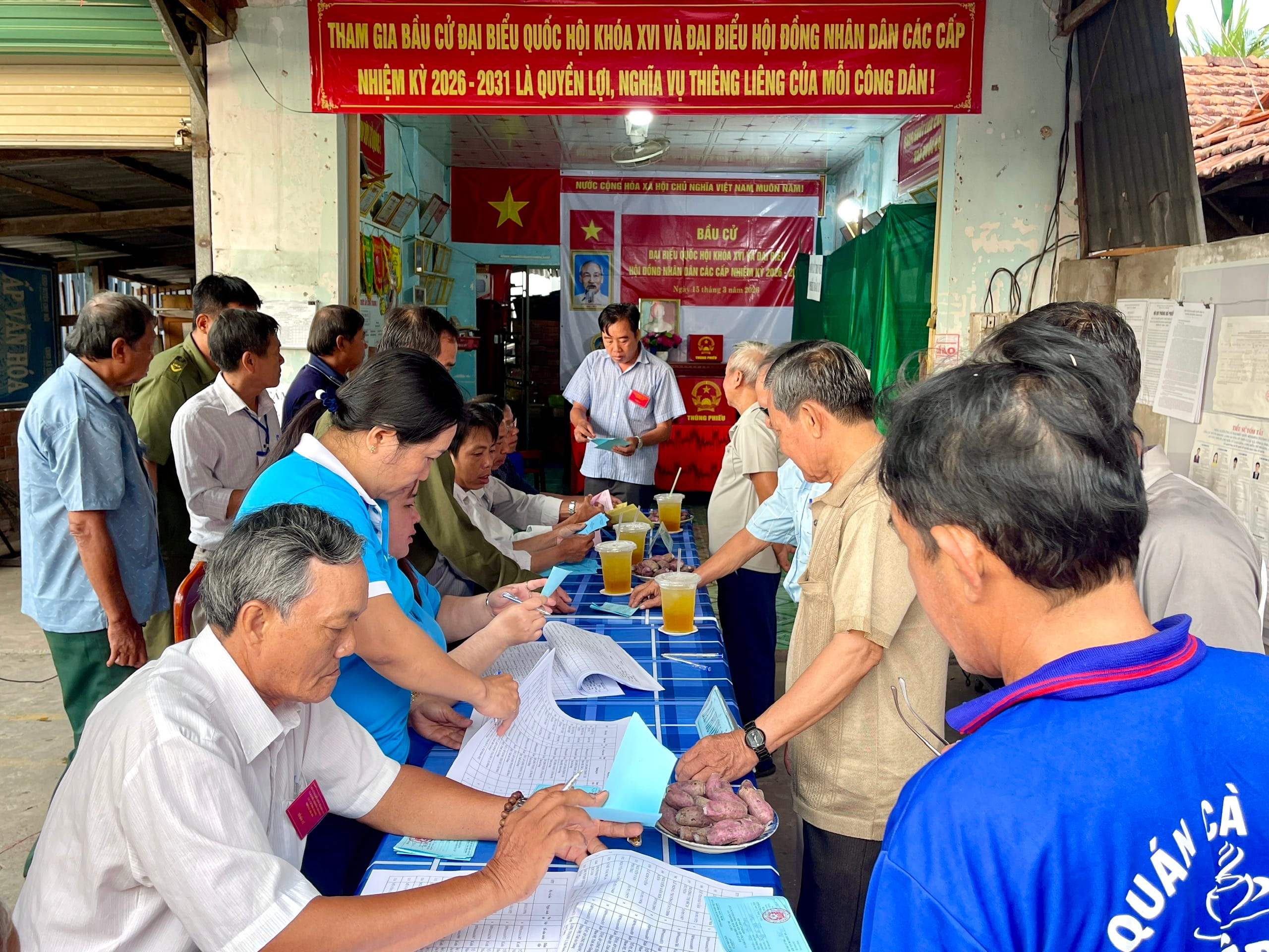 Cử tri đại diện được mời bỏ phiếu đầu tiên, sau đó các cử tri lần lượt thực hiện quyền bầu cử theo hướng dẫn của Tổ bầu cử. Các thành viên Tổ bầu cử túc trực tại khu vực hòm phiếu để hướng dẫn, đảm bảo việc bỏ phiếu diễn ra trật tự, an toàn và đúng quy định.