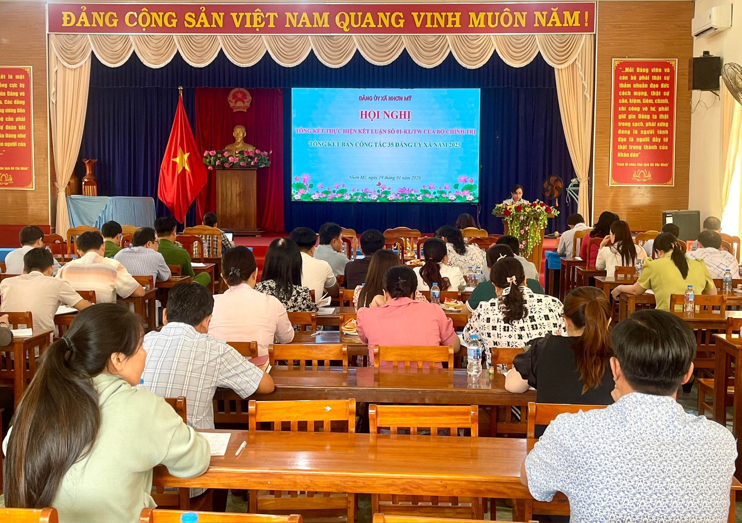 Chiều ngày 19/01, Đảng uỷ xã Nhơn Mỹ tổ chức hội nghị tổng kết thực hiện Kết luận số 01 của Bộ Chính trị và tổng kết Ban công tác 35 Đảng ủy năm 2025. Đồng chí Quang Lê Hồng Chuyên, Phó Bí thư Thường trực Đảng uỷ xã chủ trì hội nghị.