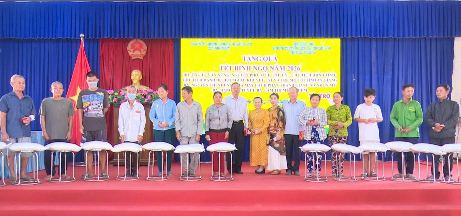 Sáng ngày 09/02/2026, tại hội trường UBND xã Nhơn Mỹ, Hội Bảo trợ người khuyết tật và trẻ mồ côi tỉnh An Giang phối hợp cấp ủy, chính quyền xã Nhơn Mỹ tổ chức chương trình trao quà Tết cho hộ nghèo, cận nghèo, hộ có hoàn cảnh khó khăn trên địa bàn xã.