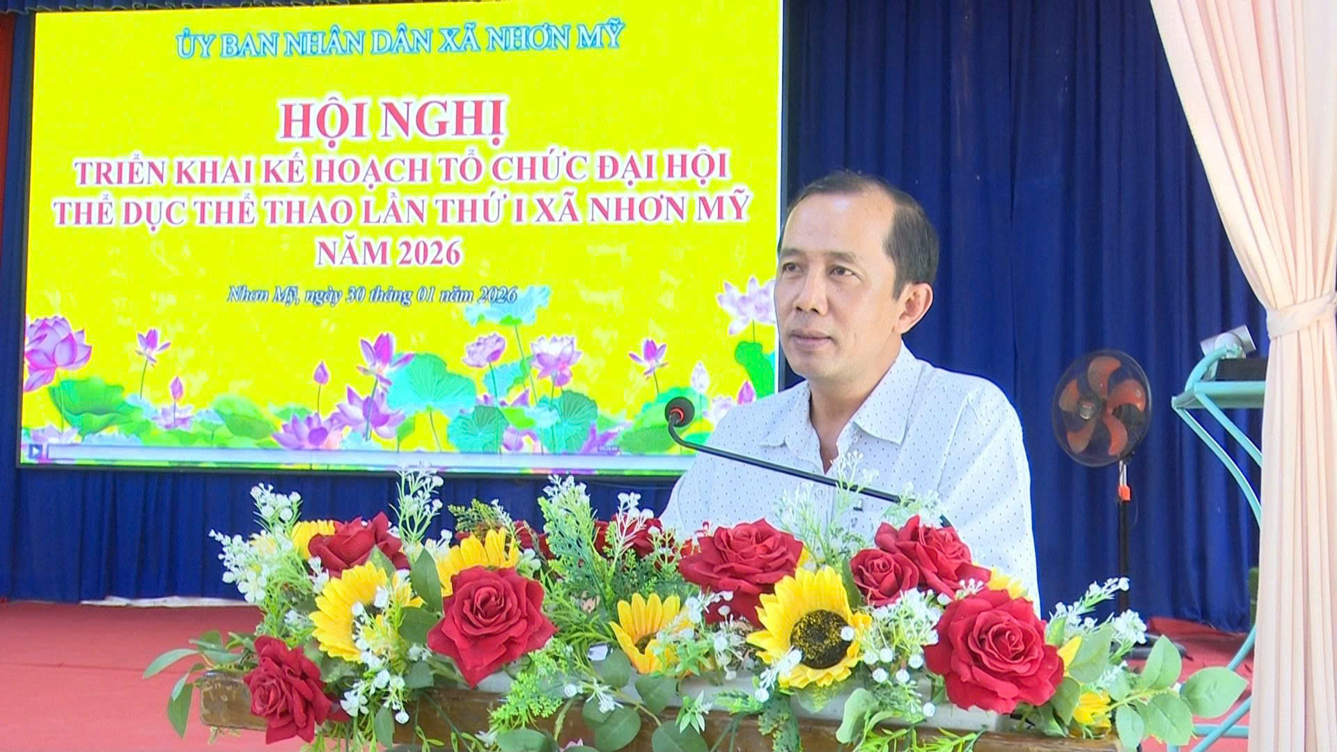 Chiều ngày 30/01/2026, UBND xã Nhơn Mỹ triển khai Kế hoạch tổ chức Đại hội Thể dục thể thao xã lần thứ I, năm 2026. Đây là hoạt động có ý nghĩa quan trọng nhằm thúc đẩy phong trào rèn luyện thể dục thể thao trong nhân dân, nâng cao đời sống tinh thần và tạo sân chơi lành mạnh cho các tầng lớp nhân dân, đặc biệt là lực lượng vận động viên ở cơ sở. Hội nghị do ông Hồ Hữu Hậu – Phó Chủ tịch UBND xã chủ trì.