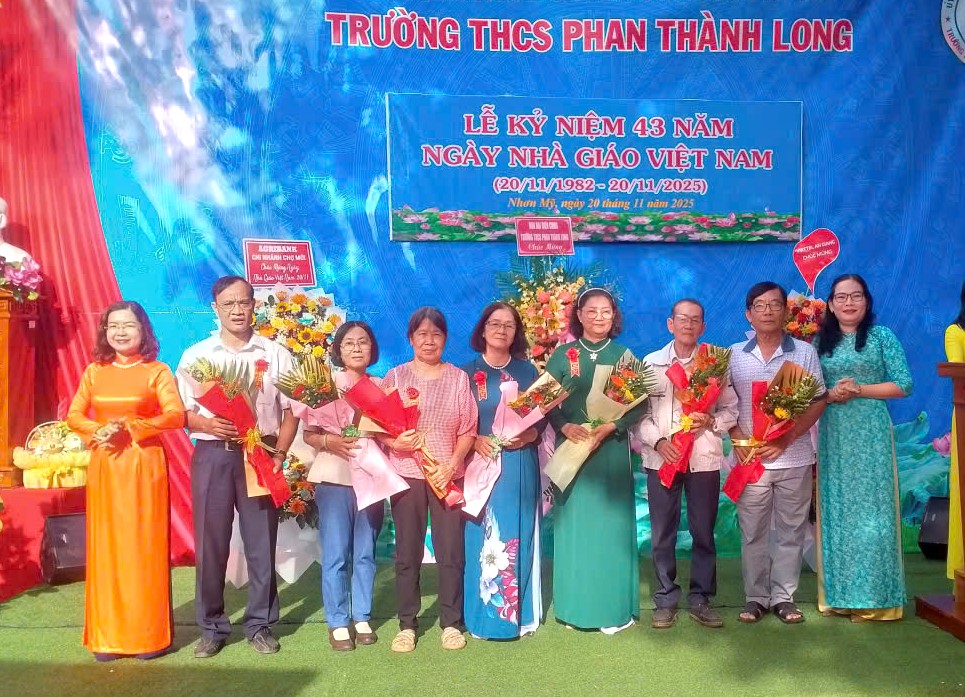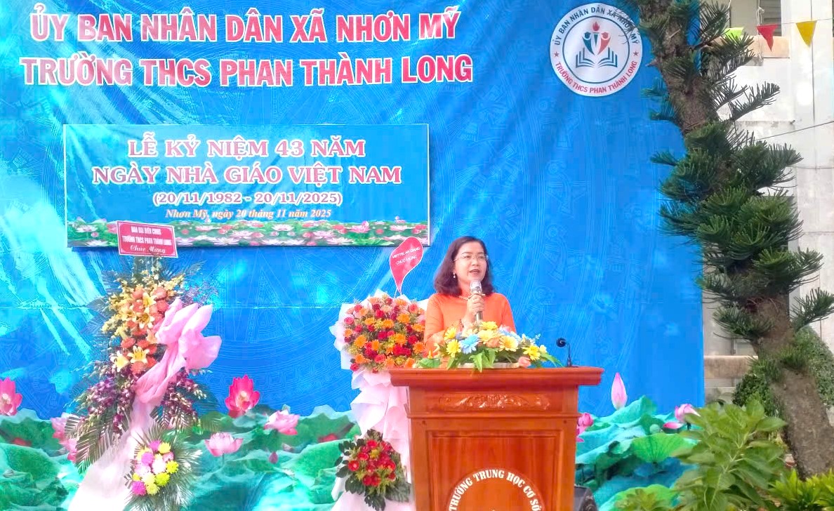 Sáng 20/11/2025 tại Trường THCS Phan Thành Long long trọng kỷ niệm 43 năm Ngày Nhà giáo Việt Nam (20/11/1982 – 20/11/2025). Đến dự có đồng chí Quang Lê Hồng Chuyên, Phó Bí thư Thường trực Đảng ủy xã Nhơn Mỹ.