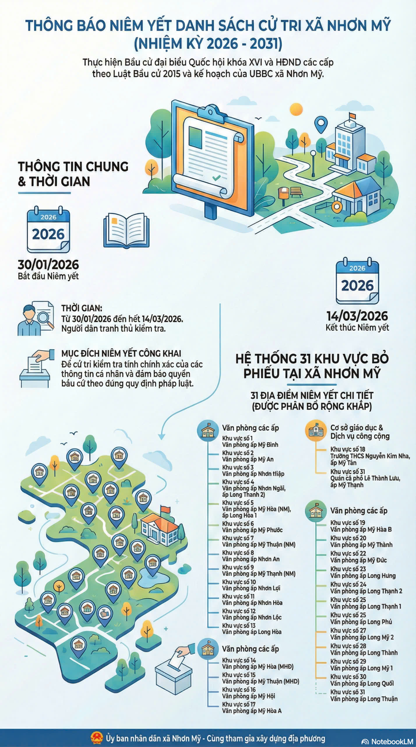 Thông báo niêm yết công khai danh sách cử tri tham gia bầu cử đại biểu Quốc hội khóa XVI và đại biểu Hội đồng nhân dân các cấp nhiệm kỳ 2026 -2031 trên địa bàn xã Nhơn Mỹ