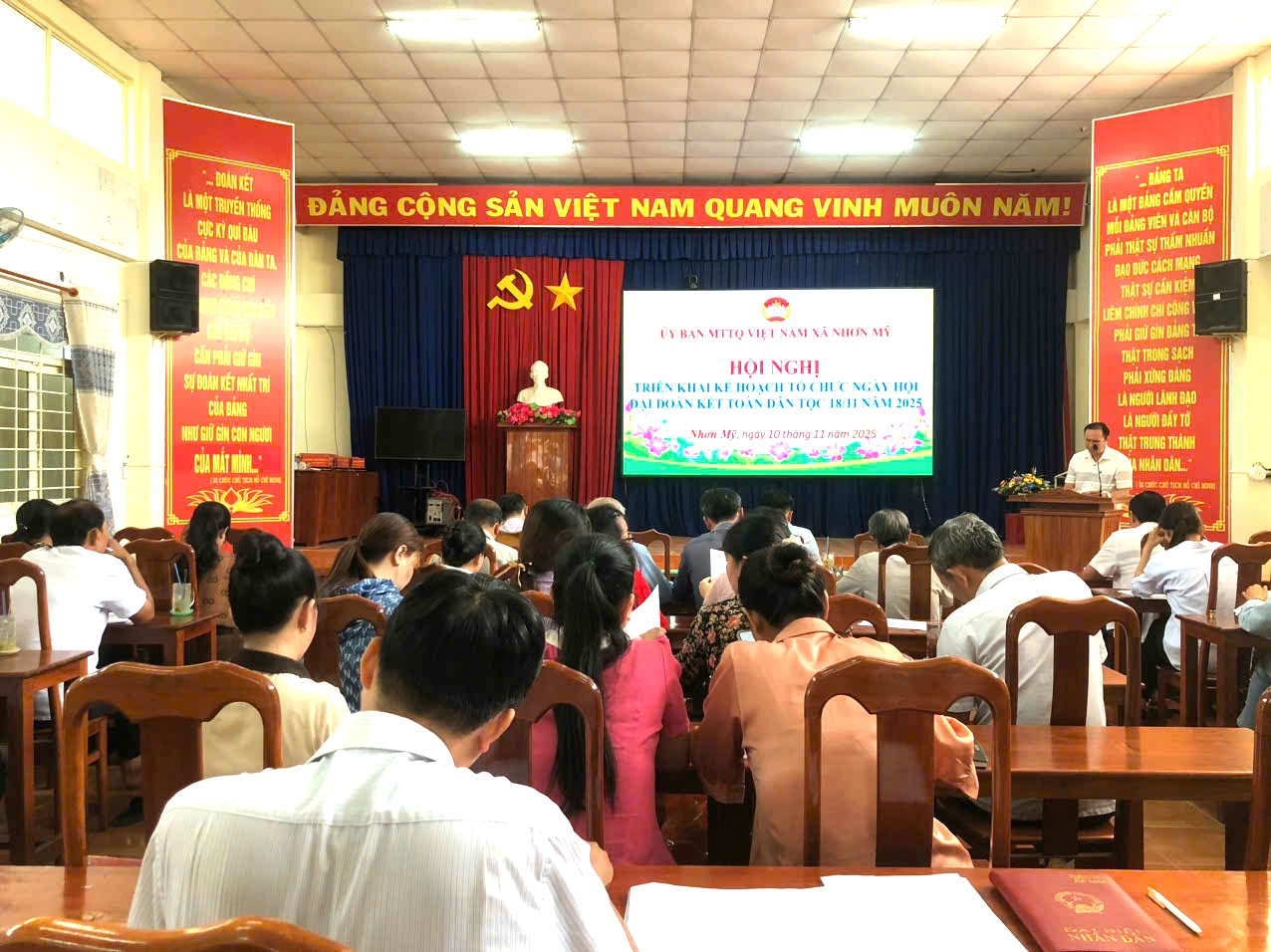 Chiều ngày 10 tháng 11 năm 2025, Ủy ban Mặt trận Tổ quốc Việt Nam xã Nhơn Mỹ đã tổ chức Hội nghị triển khai kế hoạch tổ chức Ngày hội Đại đoàn kết toàn dân tộc ở khu dân cư năm 2025. Ông Nguyễn Văn Sanh – Chủ tịch Ủy ban MTTQ Việt Nam xã Nhơn Mỹ chủ trì hội nghị.